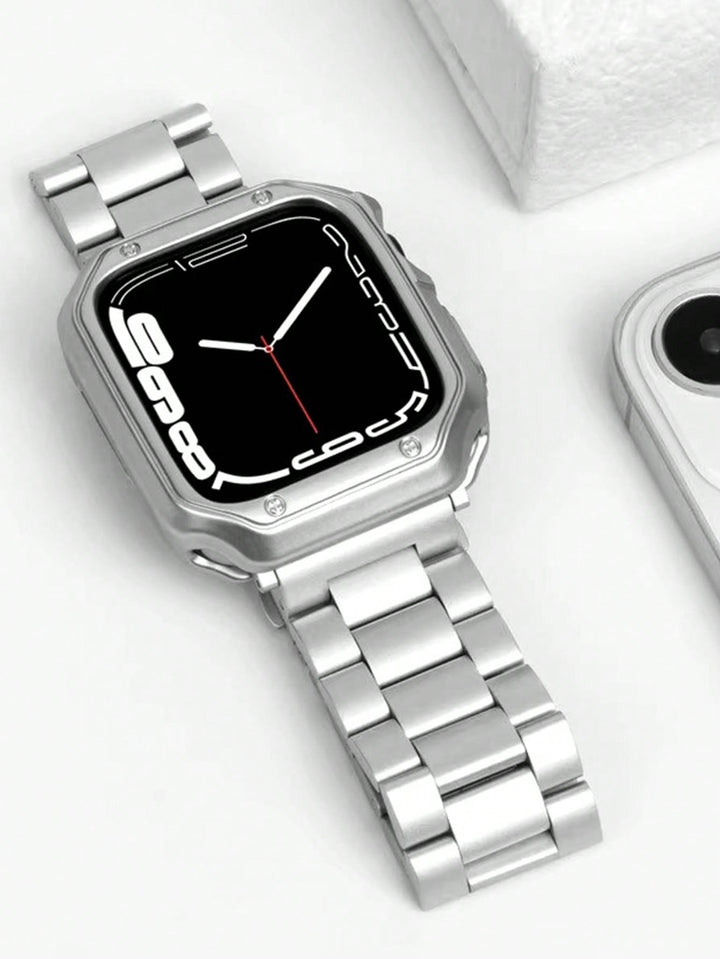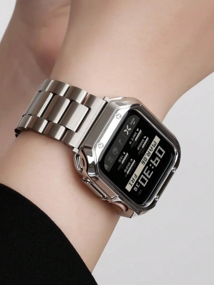 Shein - 1Pc Watch Screen Protective Case Fashion Metal Three Bead Watchband For Apple Watch Series/Se/8/7/6/5/4/3/2/1 Luxury Stainless Steel Strap For Apple Watch 44Mm 42Mm 44Mm 45Mm 49Mm 38Mm 41Mm