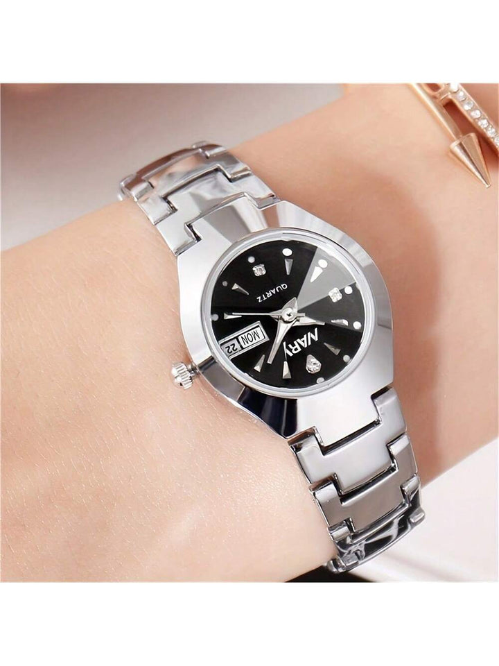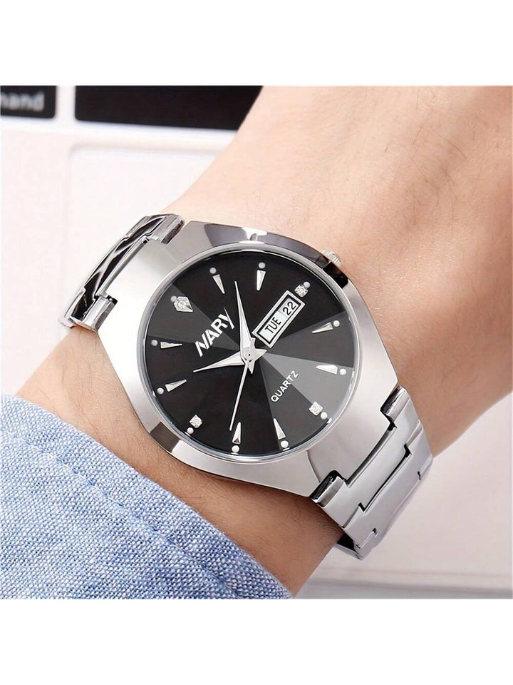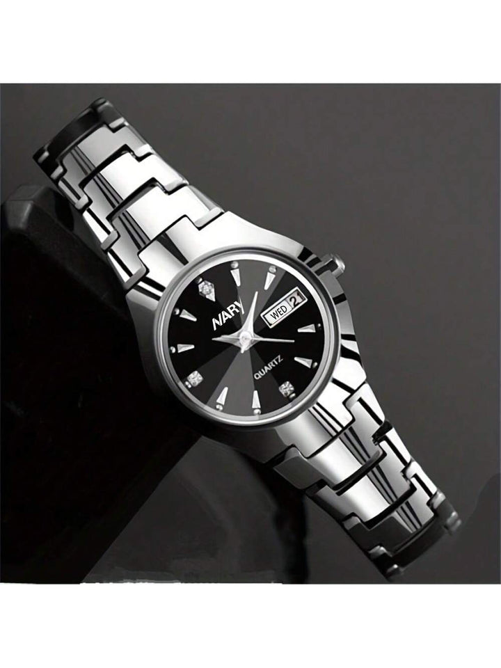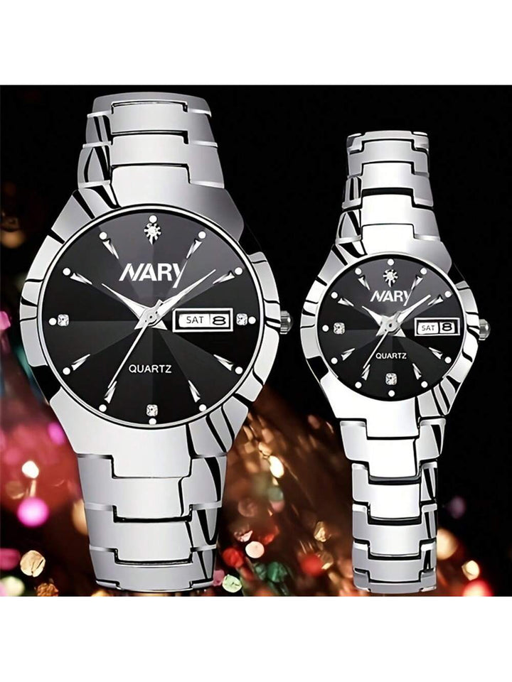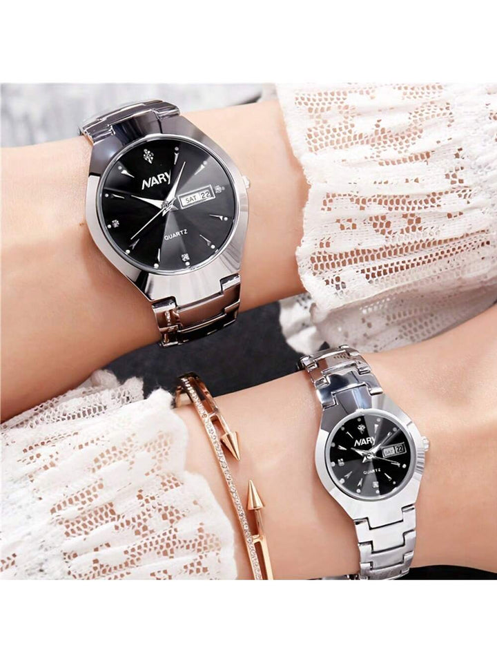Shein - 2Pcs/Set Couple'S Quartz Watch With Calendar Function, Business & Fashion Design, Ideal Valentine'S Day Gift For Men & Women, Suitable For Daily Wear