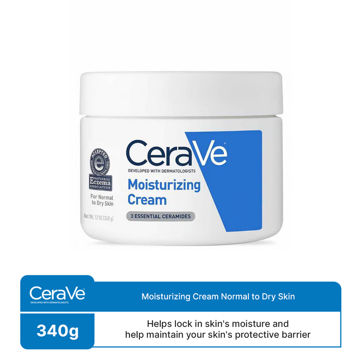 Developed with dermatologists, the rich formula of the CeraVe Moisturising Cream helps to protect the skin's natural barrier with three essential ceramides and MVE technology to provide daily instant and long-lasting hydration. Hyaluronic Acid helps to retain the skin’s natural moisture.
