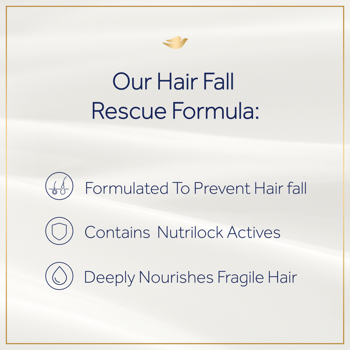 *Hair fall refers to hair breakage**Hairfall due to breakage, based on a lab test with Dove Hair Fall Rescue System vs non-conditioning shampoo
