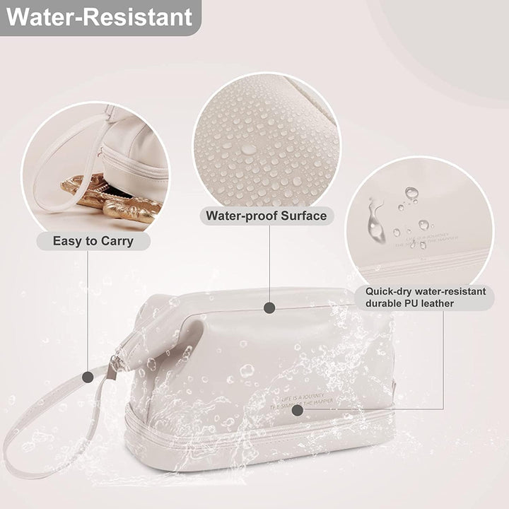 ♥HIGH QUALITY --- The fabric is made of premium leather, soft, comfortable, lightweight,tough and smooth.It is waterproof, so you don’t have to worry about water splashing on the cosmetic bag when washing your hands.