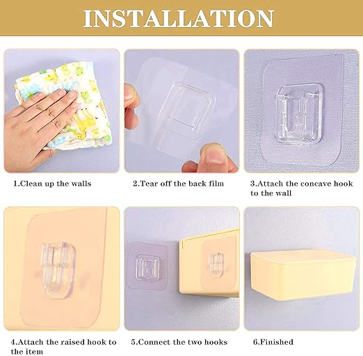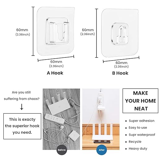 - Superior Quality - Our double-sided self-adhesive wall hooks are made of high-quality PVC material, without trace and residue.With good elasticity and toughness, not easy to tear, will not leave any difficult to remove the glue mark, keep the wall clean and there are 8 pairs of self adhesive hooks in our package, which can meet the various needs.
