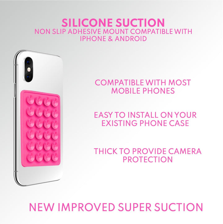 - Our 24 suction cups ensure your phone wall mount remains stable even in dynamic conditions. Our popsocket silicone phone cases are perfect for photographers, vloggers and live streamers, so you can create content smoothly and securely. Ideal for on-the-go situations, maintaining stability while capturing content from various locations.