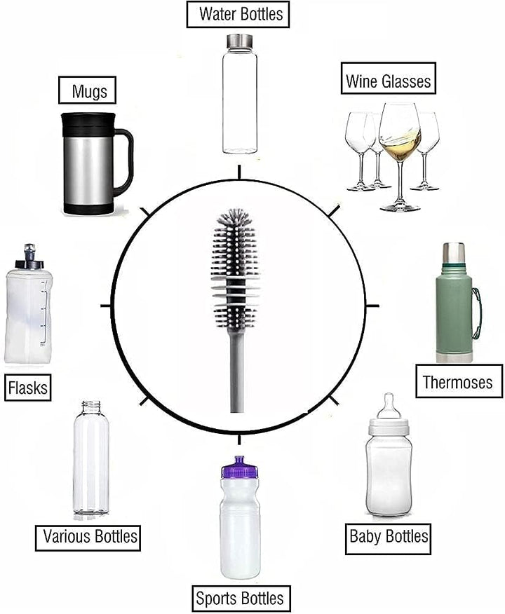 - Xacton Included: Bottle Mug Brush | Material: Silicone | color: Grey | Size- 33 cm | this is convenient for storage and saves space. | Can be high temperate sterilized, BPA-free, durable and to use.