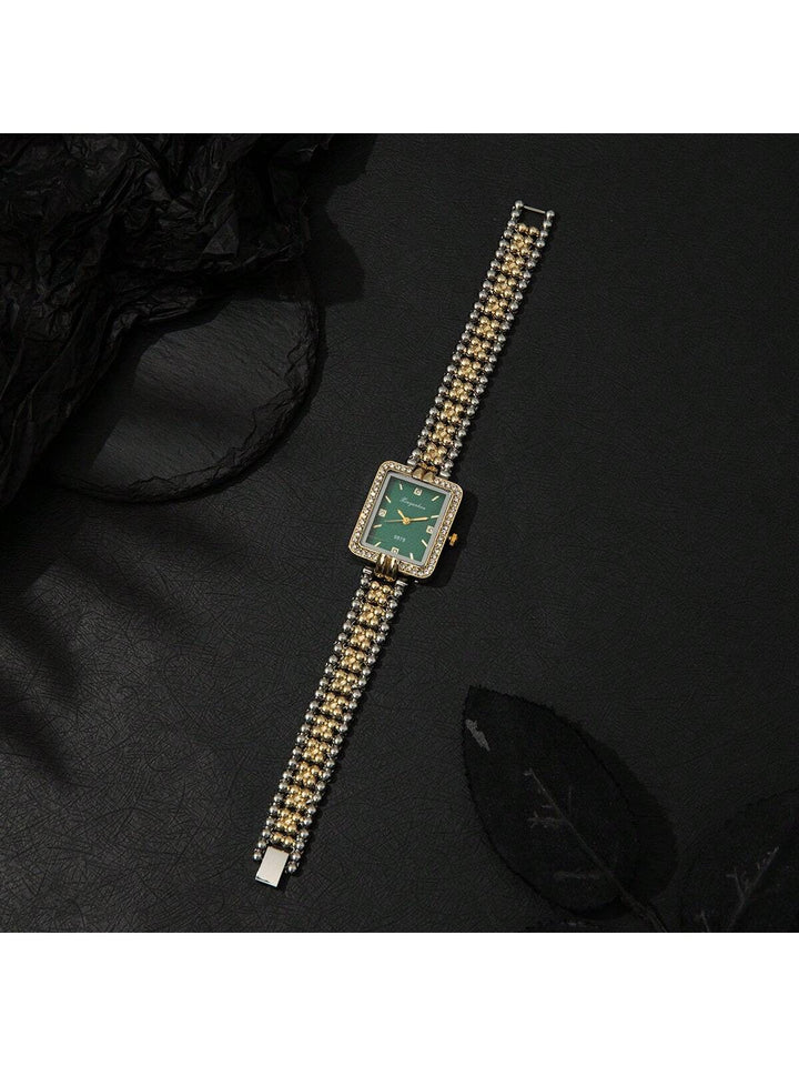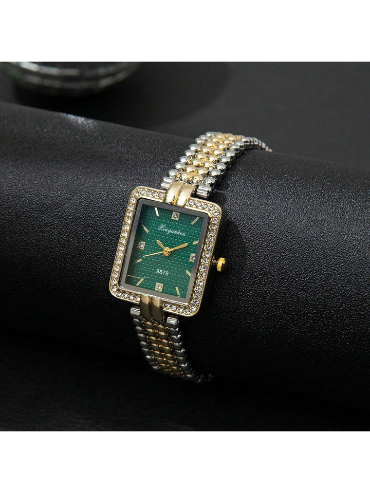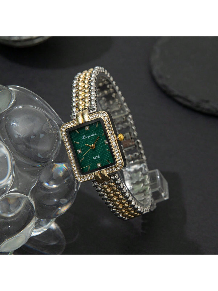 Shein - Korean-Style Women's Square Steel Strap Watch Featuring Small Dial, Diamond Decor, Elegant And Versatile, Minimalist And Casual Bracelet Watch