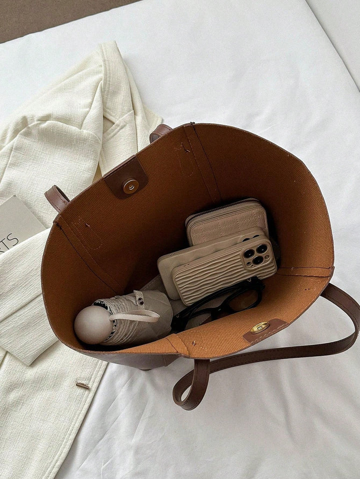 Shein - Large Capacity Tote Bag For Women, Korean Style, Ins Design, Versatile, High-End, Suitable For Commuting And School
