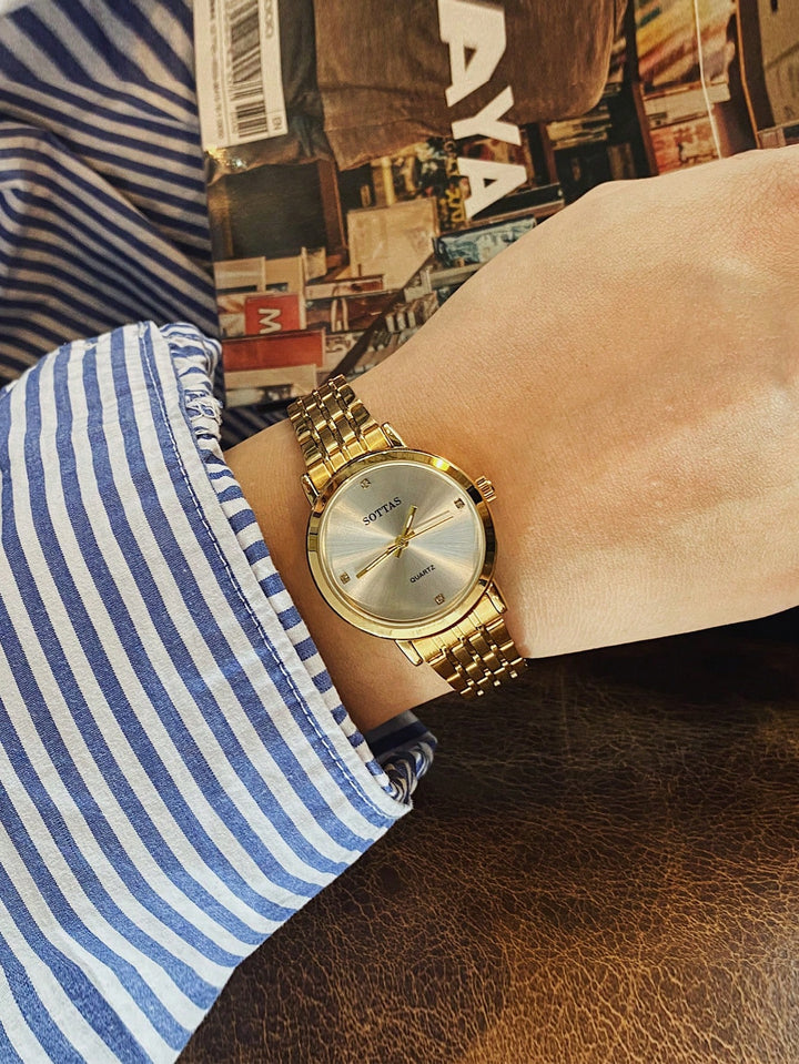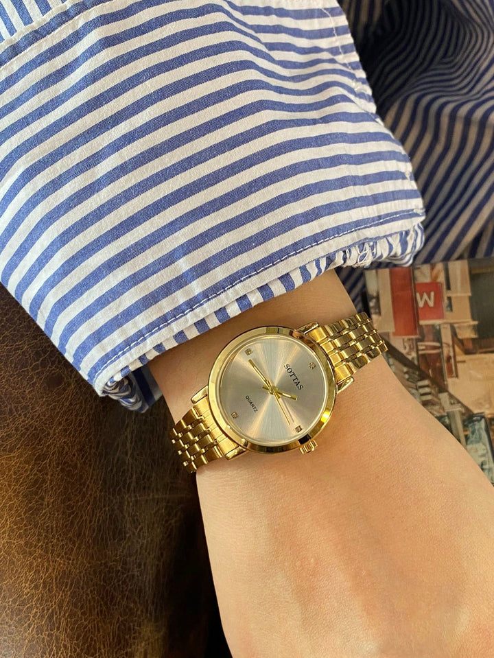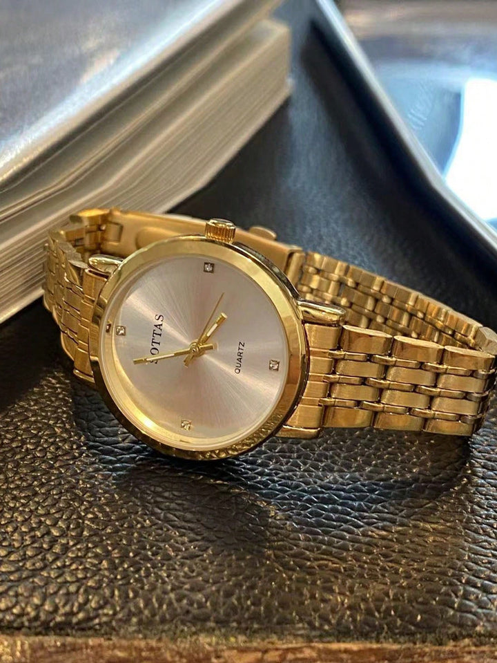 Shein - Latest Korean Style Women's Watch, Gold & White Dial, Waterproof, Stainless Steel Strap, Fashionable & Casual Quartz Wristwatch