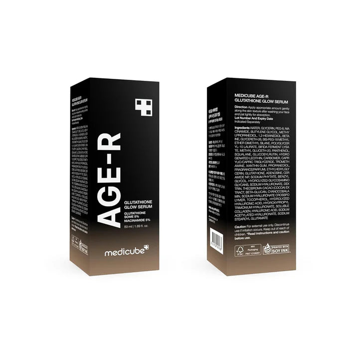 - This serum is formulated with 50,000ppm of glutathione along with niacinamide, adenosine, collagen and bifida ferment lysate to brighten skin, improve skin elasticity and strengthen the skin barrier. For optimal results, use the serum in conjunction with medicube’s AGE-R Booster-H, a beauty device that enables deeper absorption of a product’s active ingredients.