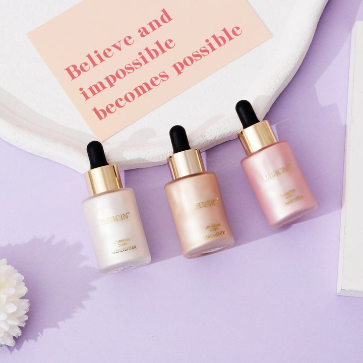 - This concentrated liquid shimmer can be added to your foundation, primer or moisturizer, or simply used on its own for a super highlighted glow. Available in 3 shades, it can also be used to contour. (13.5ml)