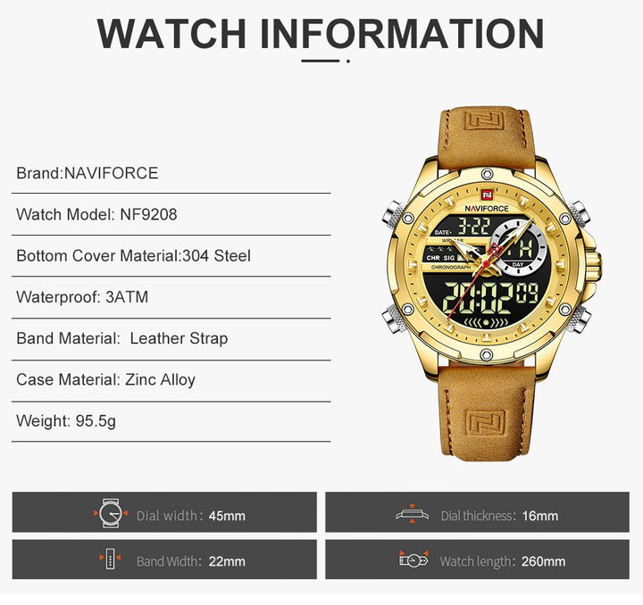 Naviforce - Dual Time Exclusive Collection NF-9208 - Gold Brown