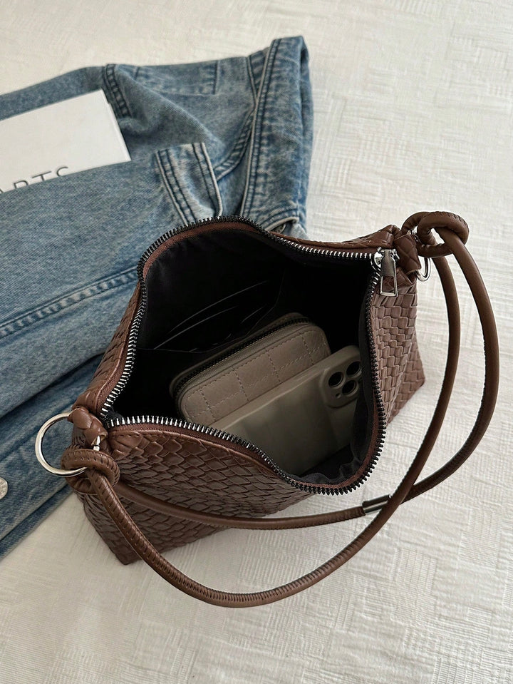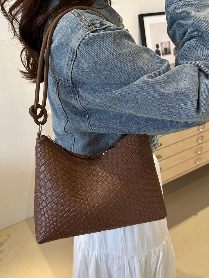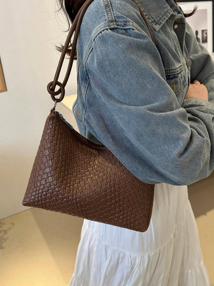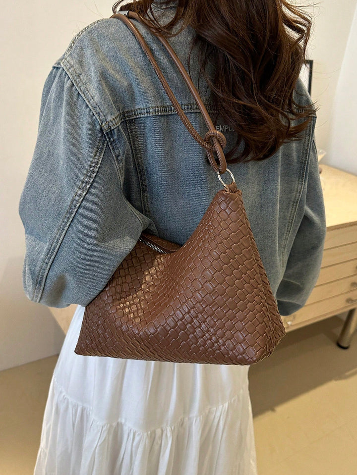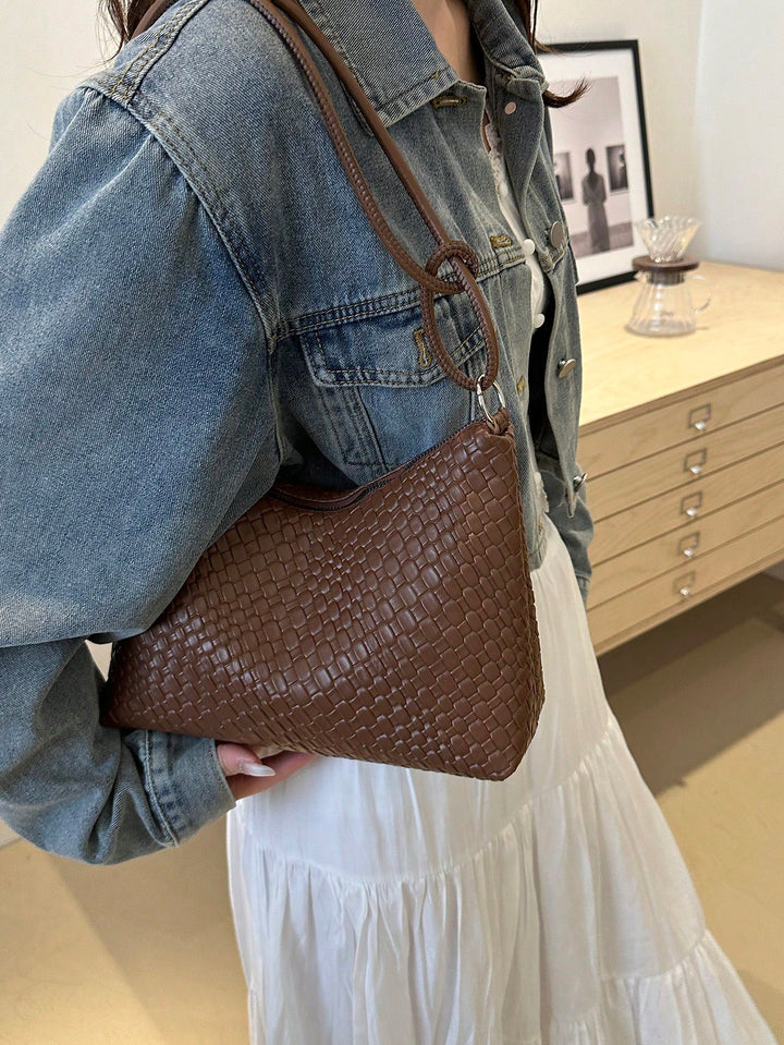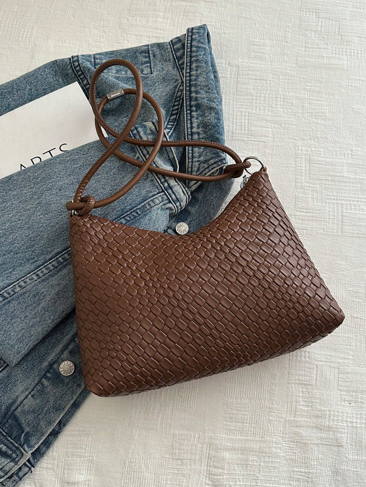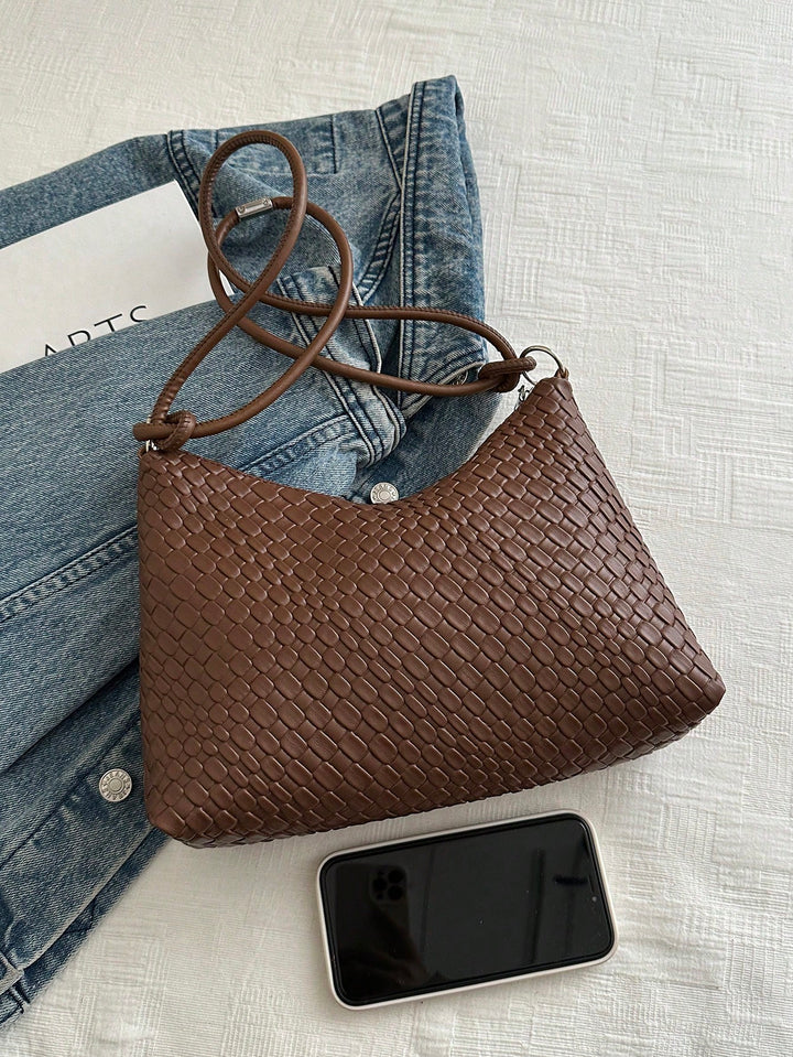 Shein - New Fashion Woven Tote Bag Retro Shoulder Bag