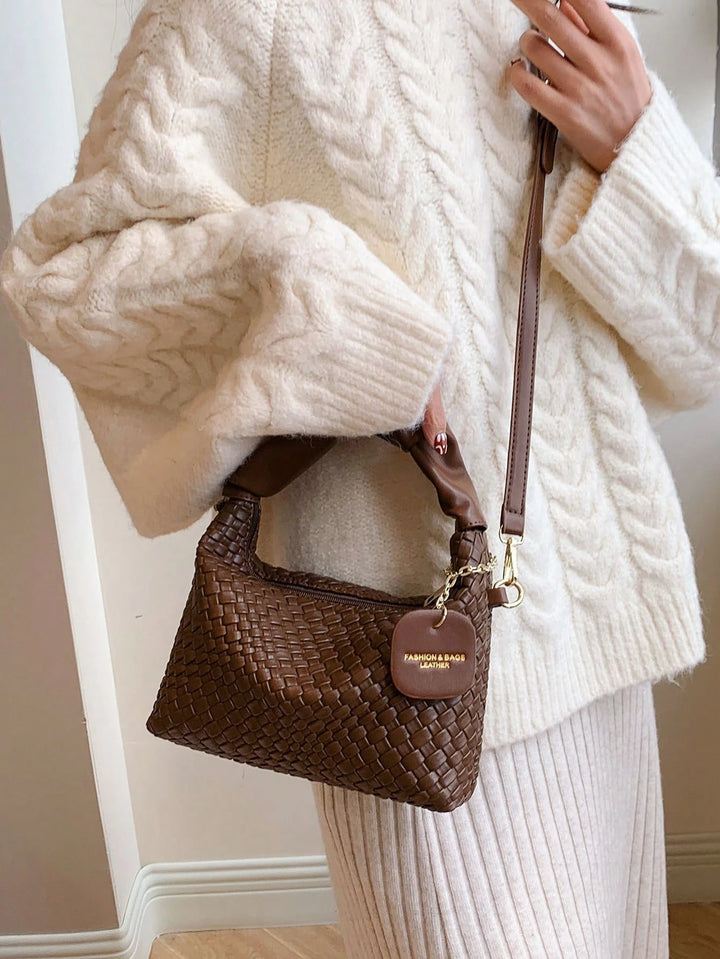 Shein - New Fashionable Simple All-Match Fold & Braid Pu Two-Tone Handbag Shoulder Bag Crossbody Bag