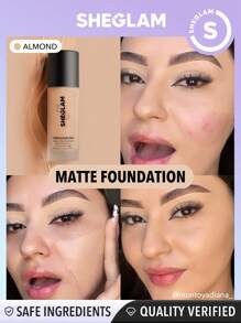 SHEGLAM - Complexion Pro Long Lasting Breathable Matte Foundation-Almond Matte Sweat-proof Foundation Oil Control Full Coverage Pore-less Concealer Waterproof Flawless