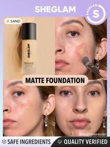SHEGLAM - Complexion Pro Long Lasting Breathable Matte Foundation-Sand Matte Sweat-proof Foundation Oil Control Full Coverage Pore-less Concealer Waterproof Flawless