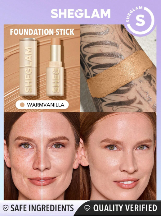 If you're looking for a portable and easy-to-use foundation, you've come to the right place. Our SHEGLAM Skin Magnet High Coverage Foundation Stick adheres to your skin with magnet-like strength and locks in your look!Featuring a technology-driven formula, our foundation stick provides a stunning natural skin-like finish that won't cake up. Plus, this unique formula is made up of various oils with branched-chain structures, providing a breathable and light texture that doesn't melt off your skin. And in case you need to get ready on the go, its portable compact twist-to-reveal packaging makes it the ultimate travel makeup companion!
