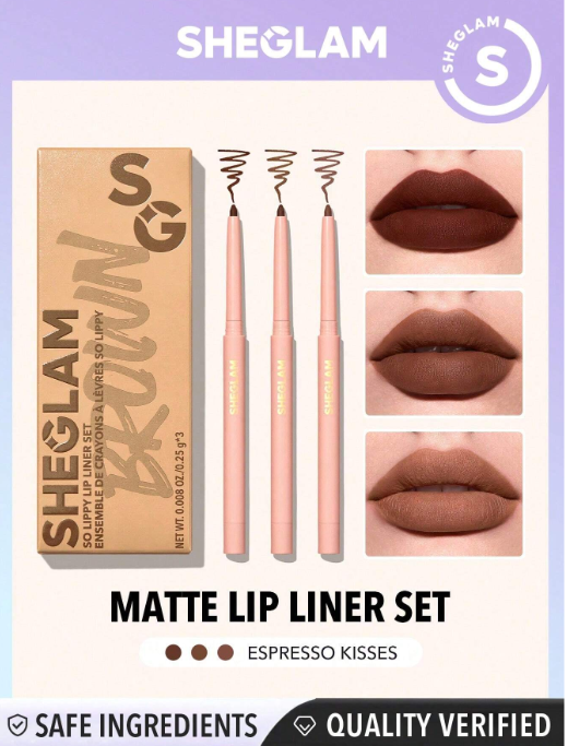 SHEGLAM So Lippy Lip Liner Set-Rose Garden 3 Pcs/Set Soft Matte Red Lip Liner Pencil High Pigment Easy To Use Espresso Kisses