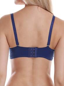 Shein - 1Pc Blue Embroidered Flower Push Up Sexy Bra