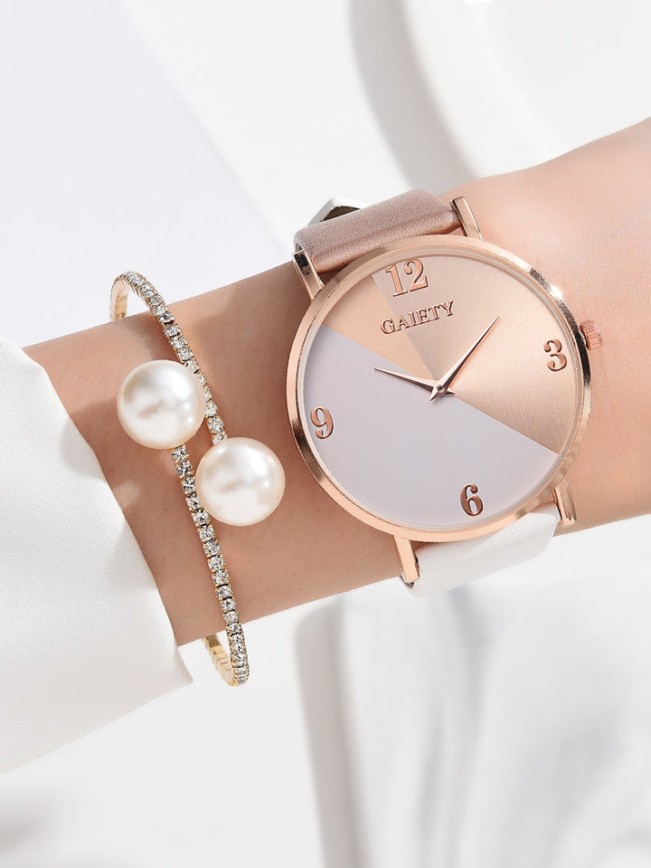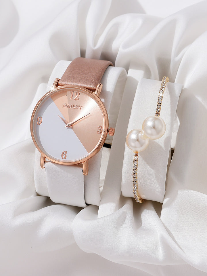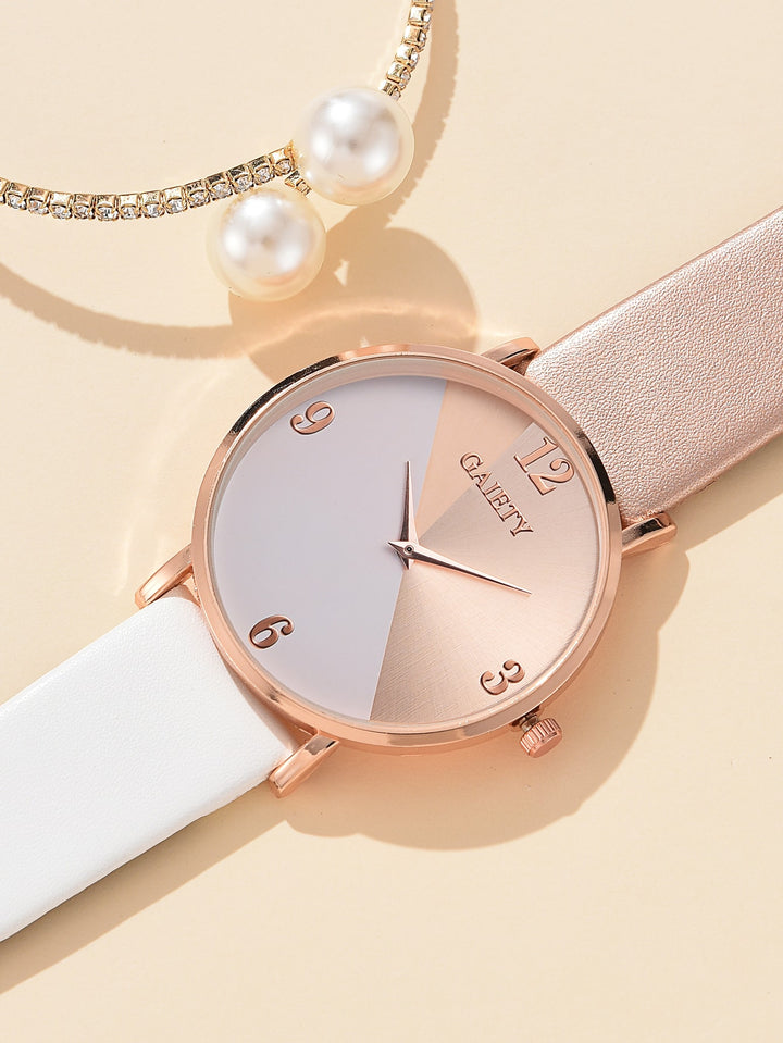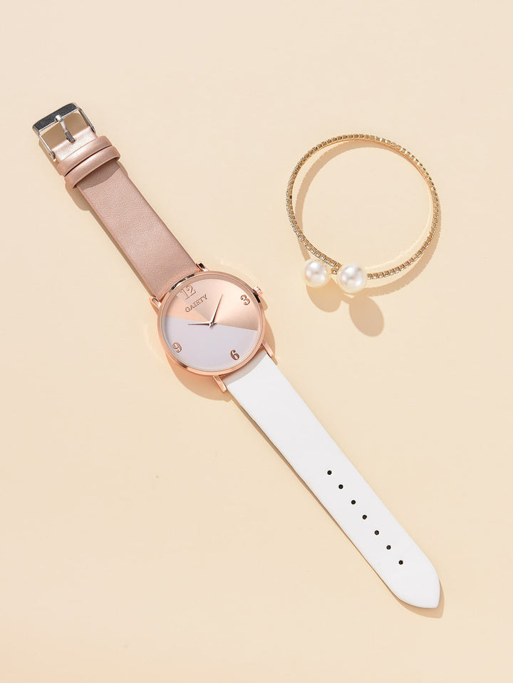 Shein - 1pc Color Block Round Pointer Quartz Watch & 1pc Bracelet