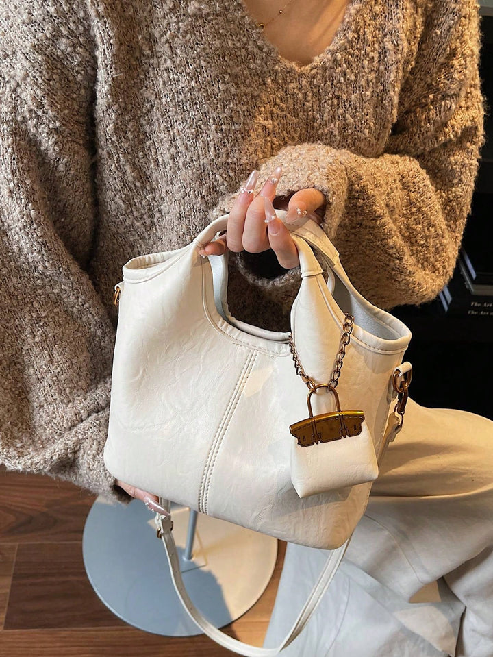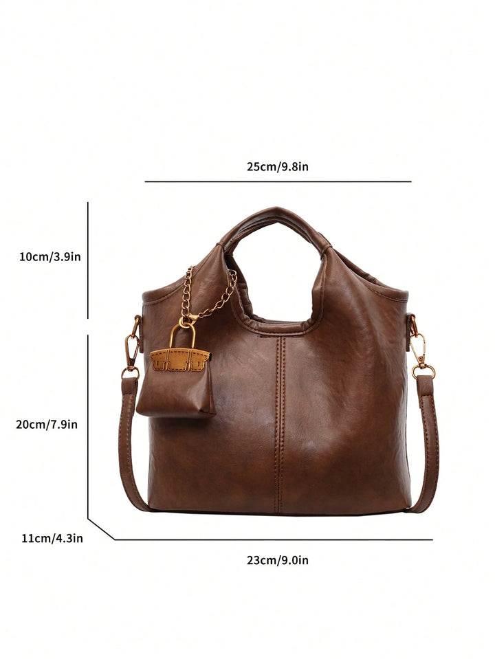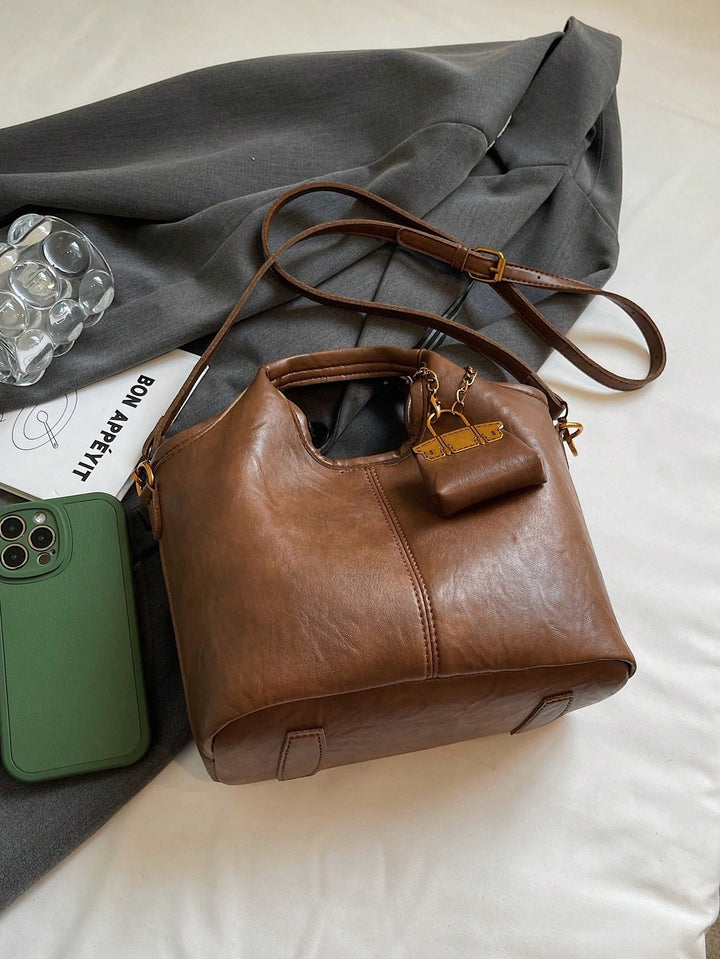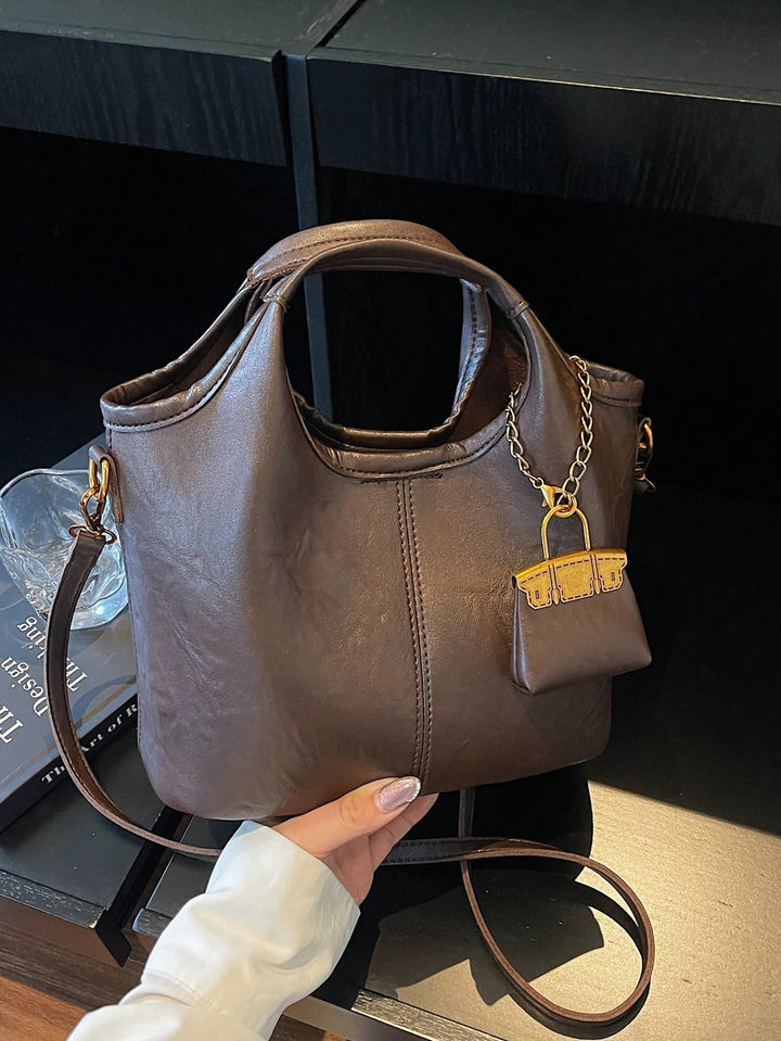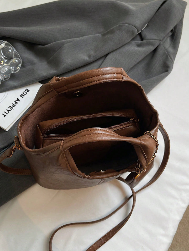 Shein - 1pc Faux Leather Solid Color Retro Women Bucket Bag, Fashion Handbag