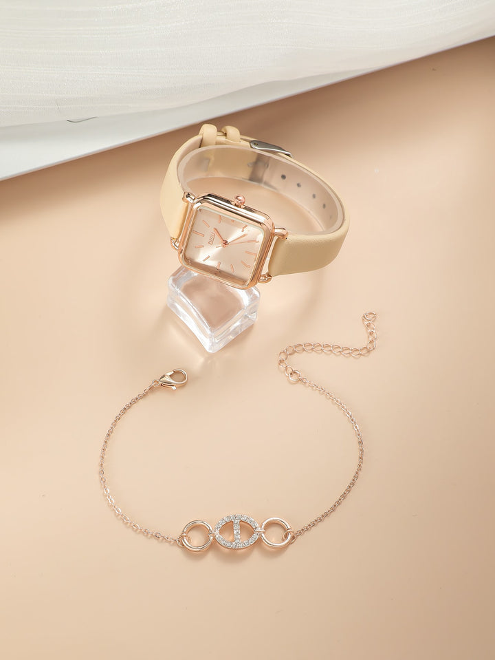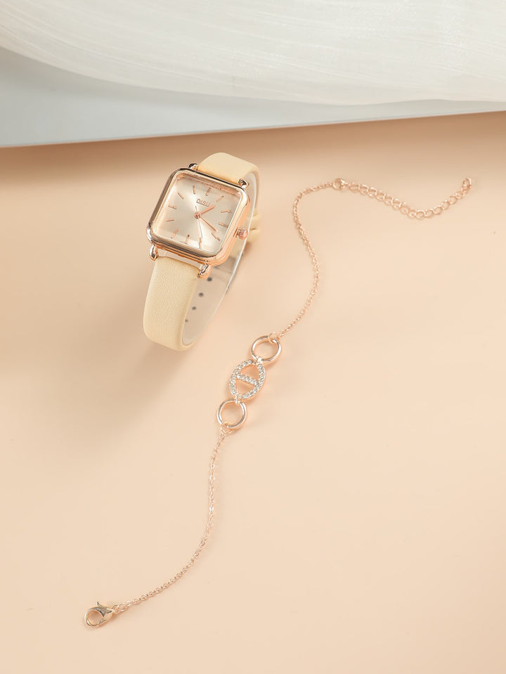 Shein - 1pc Minimalist Quartz Watch & 1pc Bracelet