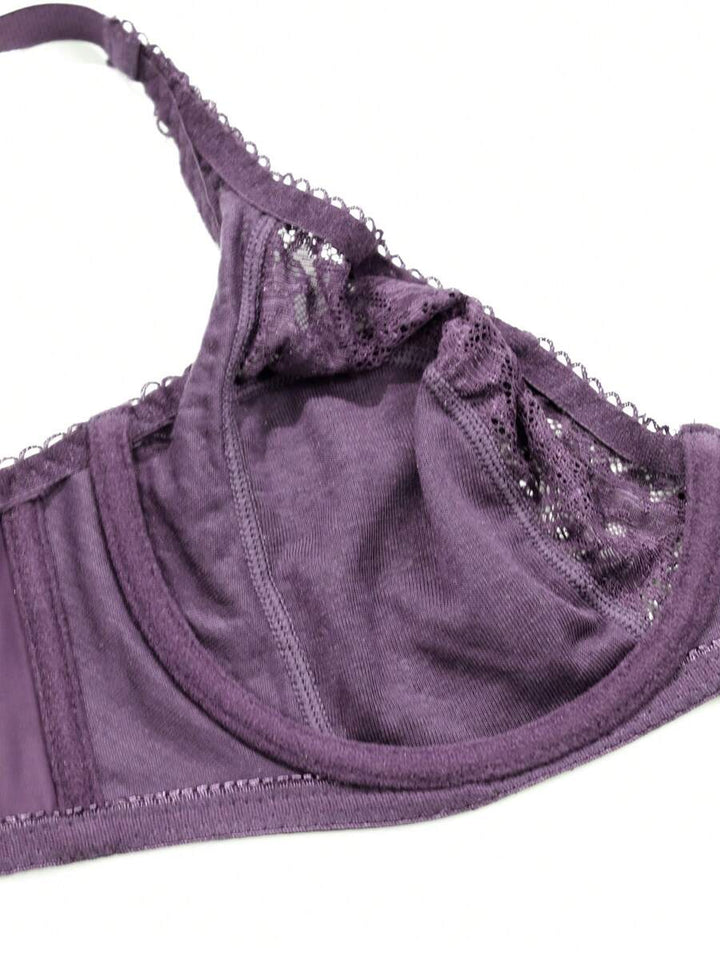 Shein - 1Pc Purple Women Ultra-Thin Embroidery Full Cup Lace Bras