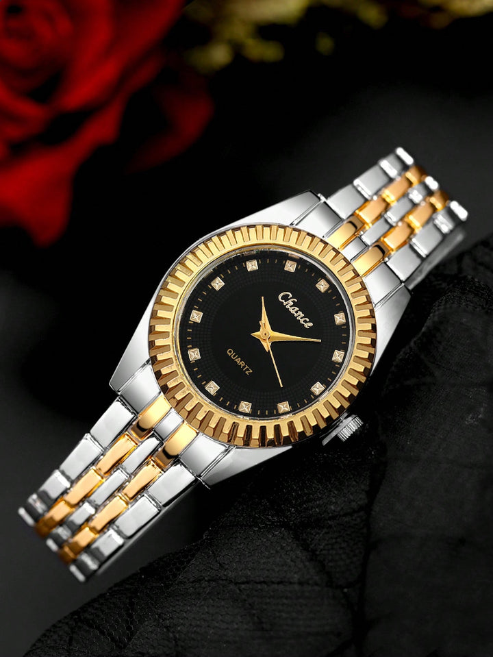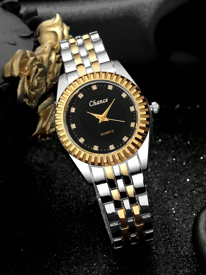 Shein - 1pc Rhinestone Decor Quartz Watch & 1pc Bow Decor Bracelet