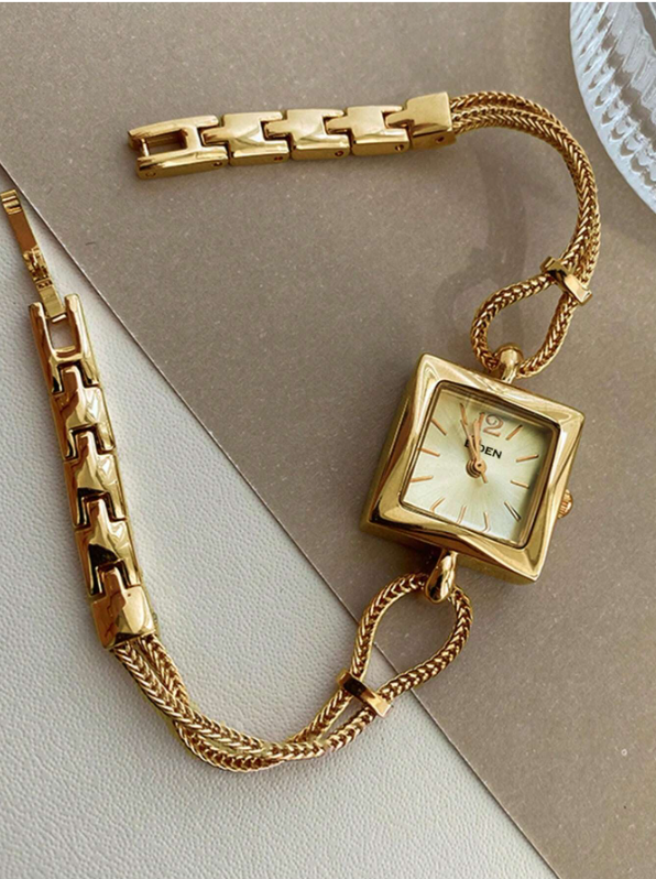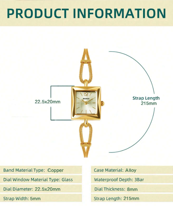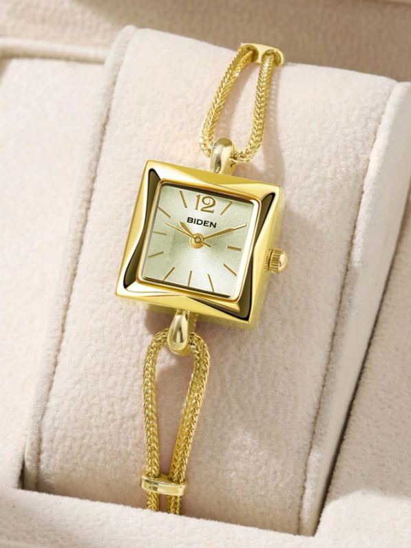 Shein - BIDEN 1pc Women's Retro Luxury Small Square Watch, Elegant Gold Quartz Watch