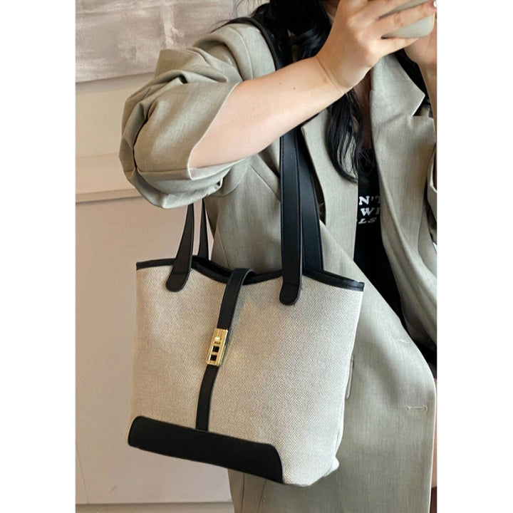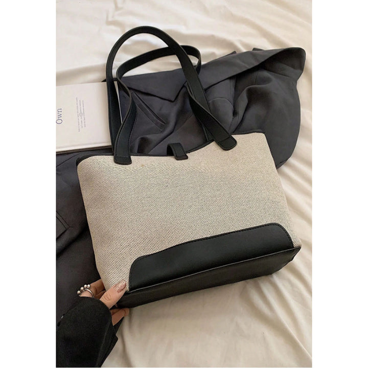 Shein - Contrast Binding Shoulder Tote Bag Casual Double Handle