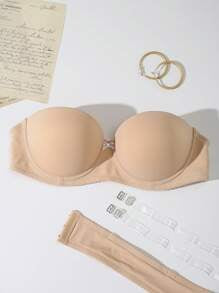 Shein - Ladies Solid Color Bow Detail Decoration Strapless Bra