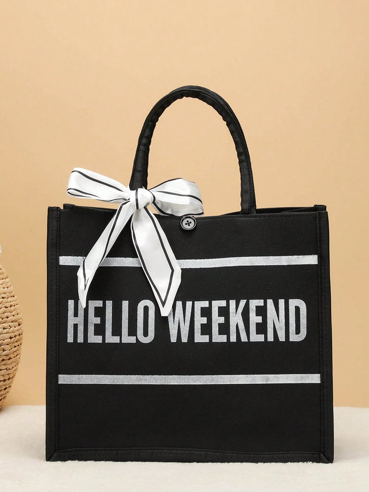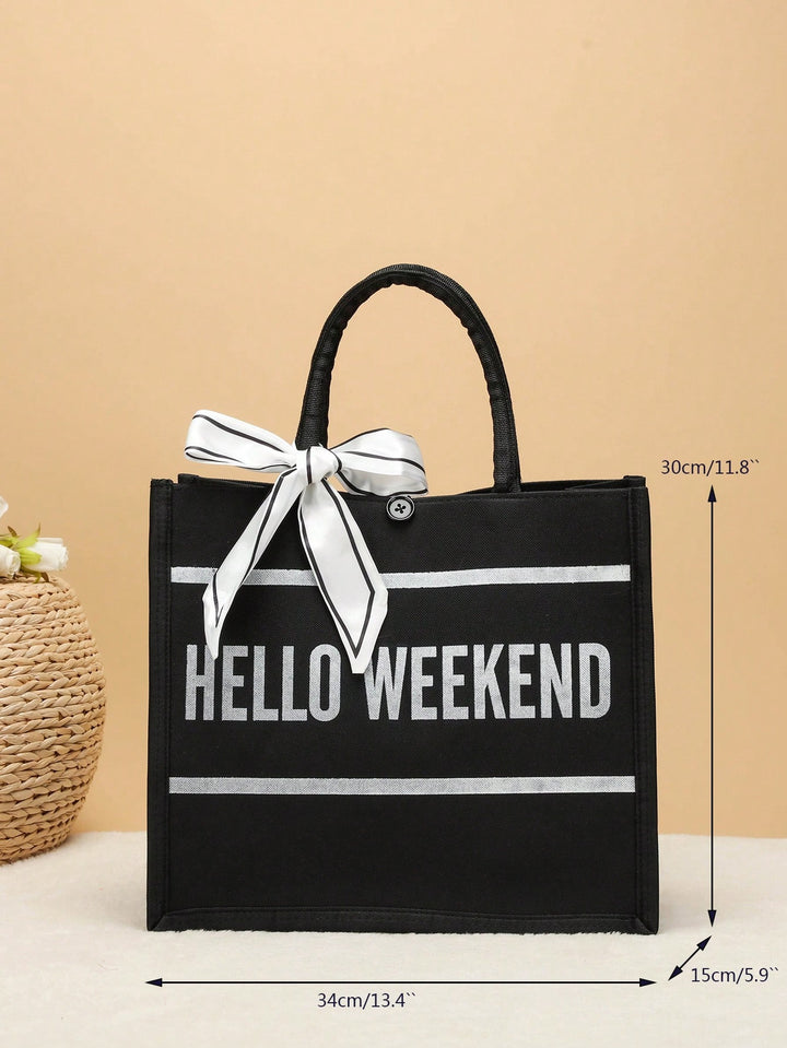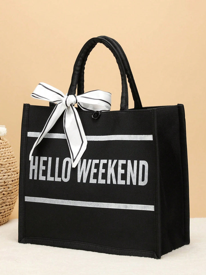 Shein - Letter Patterned Fashionable Canvas Tote Bag