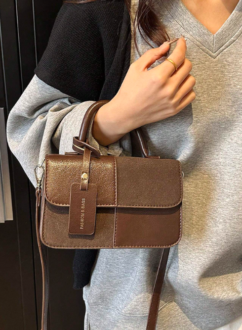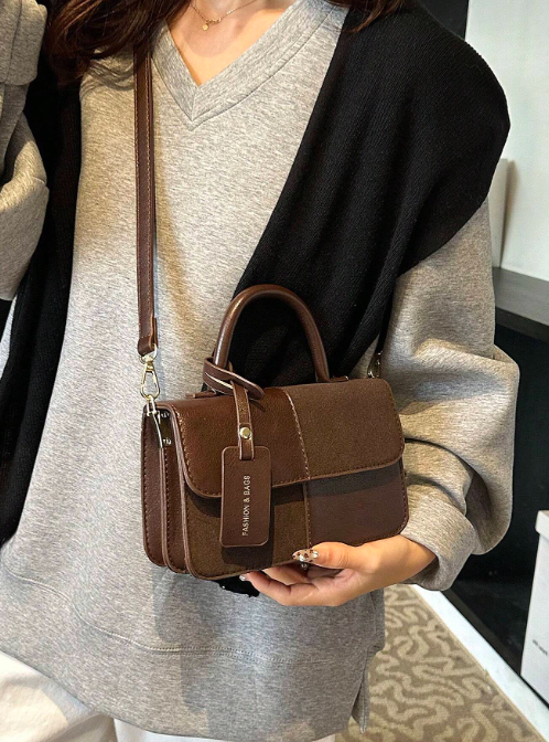 Shein - Matte Suede Custom-Stitched Design Feel Daily Tote Bag