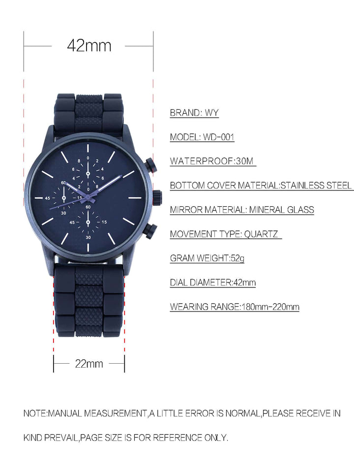 | Size | Case Size | Case Thickness | Strap Length | Strap Width |