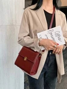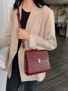 Shein - Mini Minimalist Push Lock Crossbody Bag Mini Flap Square Crossbody Bag