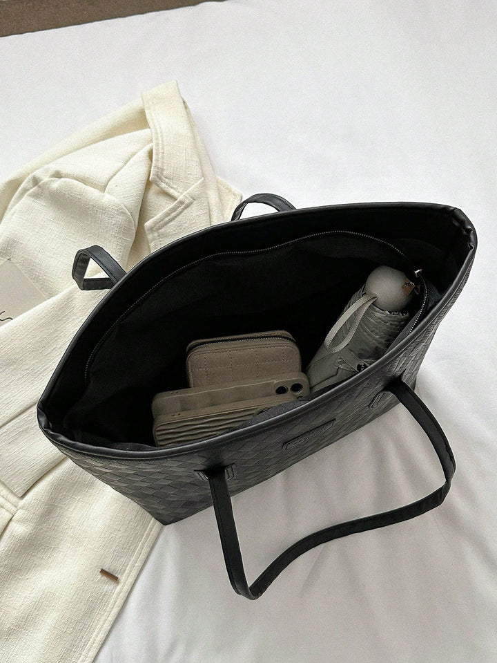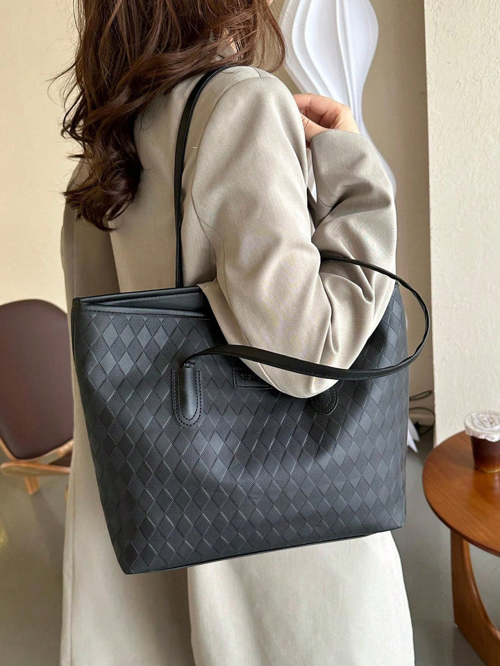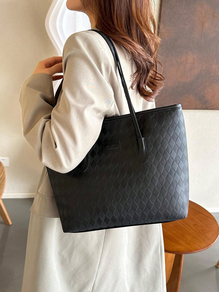 Shein - Plaid Pattern Large Capacity Tote Bag For Women