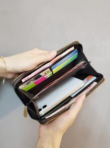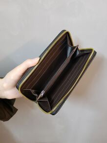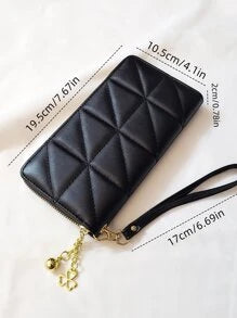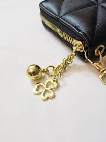 Shein - Quilted Detail Clover Decor Zipper Around Long Wallet