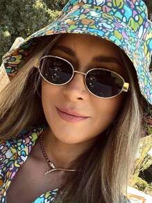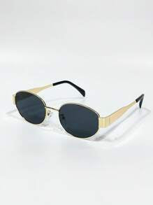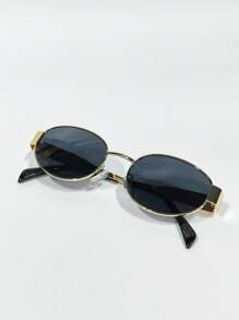 Shein - Vintage Oval Sunglasses For Women Men Small Metal Frame Sunglasses Ladies Sunglasses