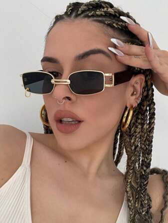 Shein - Small Frame Metal Square Sunglasses Street Sunglasses Beach Sun Glasses