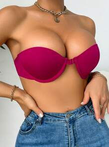Shein - Women'S Solid Color Front-Closed Underwire Bra, Single Piece