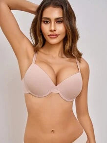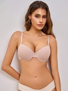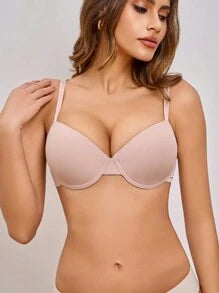 Shein - Women's Solid Color Simple Design Bra With Underwire, 1pc