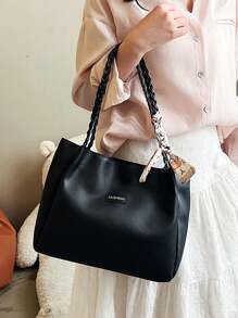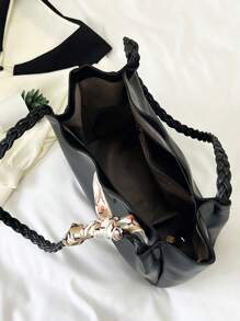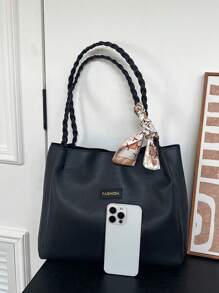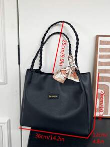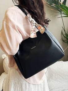 Shein - Women's Versatile Solid Color Handbag, Malist PU Leather Large Capacity Shoulder Bag With Silk Scarf