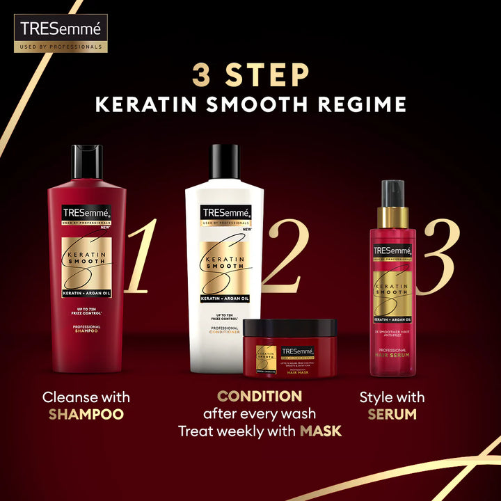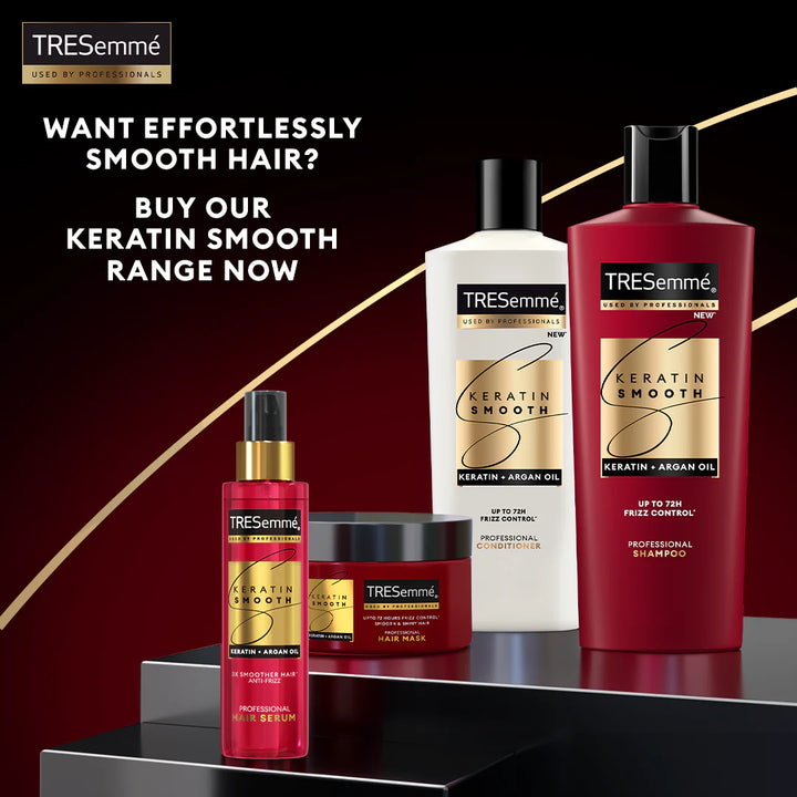 With Keratin and Marula oil from Africa, Keratin Smooth Shine Serum gives you 5 smoothing benefits—fights frizz, detangles knots, boosts shine, adds softness and tames flyaways—in 1 supremely smoothing system, for hair that’s silky but still full of natural movement. After you’ve shampooed and conditioned, this TRESemmé Keratin Smooth Shine Serum is the essential step in creating your smooth, glossy style. Designed with a non-greasy formula, this hair smoothing serum leaves hair healthy-looking and polished, sealing in all the head-turning shine. Get full movement with all the hair smoothing, anti frizz and shine a woman could ask for with our TRESemmé Keratin Smooth System and supremely smoothing shine serum.