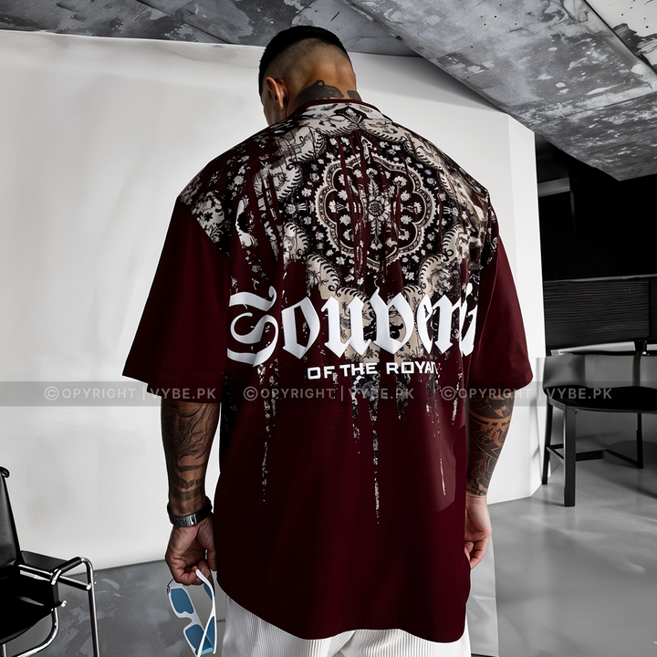 VYBE - Oversize Souvenir Printed T-Shirt - Maroon