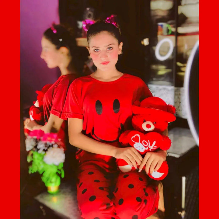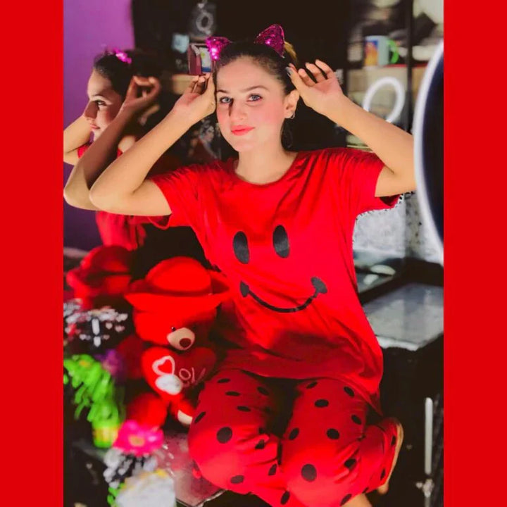 VYBE - Red Smile with Dotted Style Printed PJ Suit