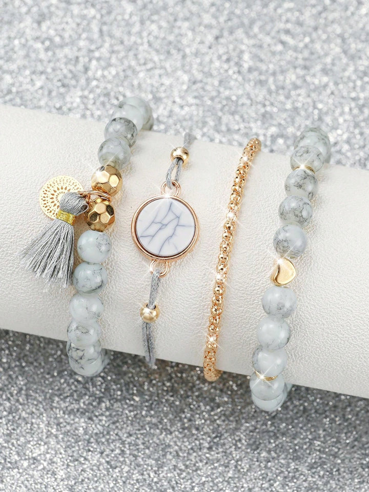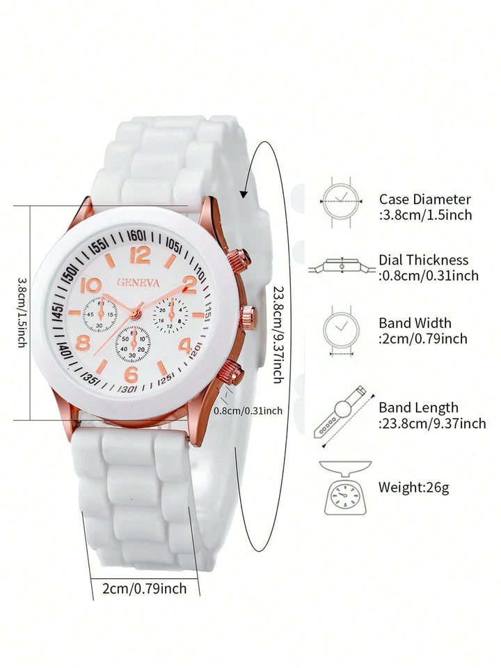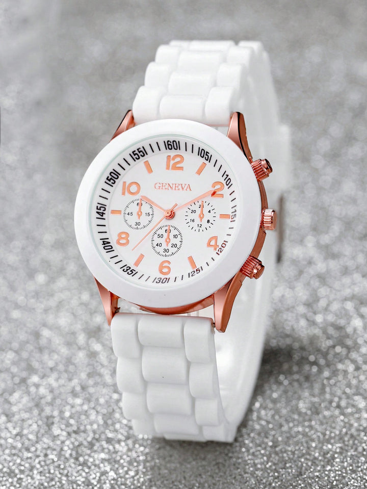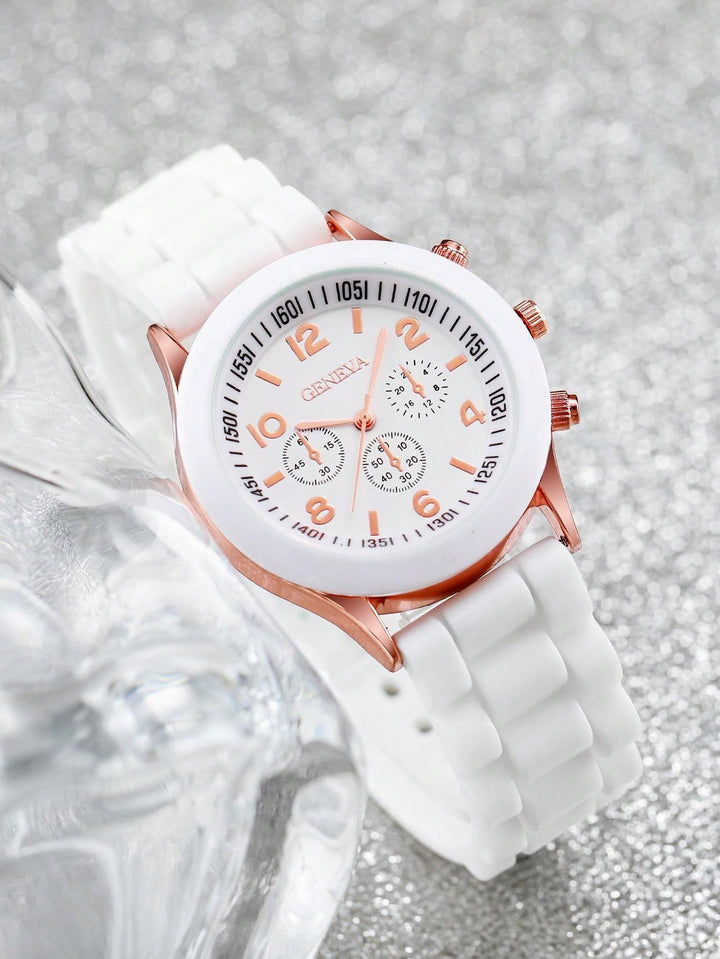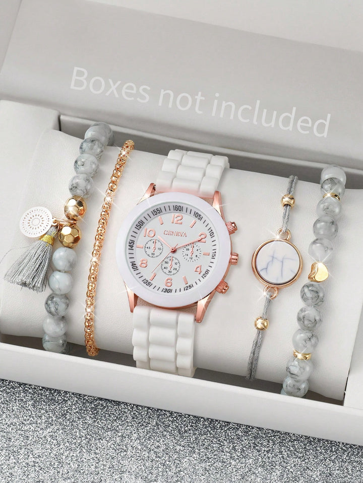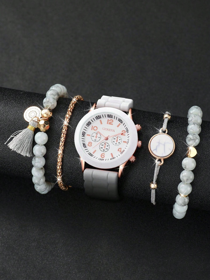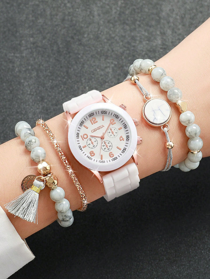 Shein - Women's Silicone Band Fashionable Minimalist Digital Dial Quartz Watch & Bracelet Set (5pcs/Set)